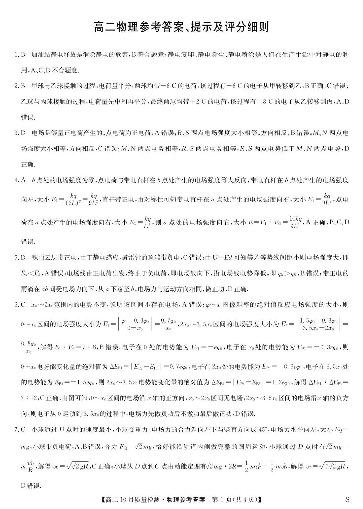 河北省保定市八校联考2025-2026学年高二上学期10月考试 物理答案.pdf