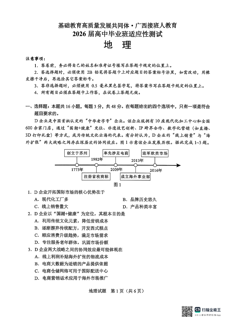 广西接班人教育2026届高中毕业班适应性测试 地理.pdf