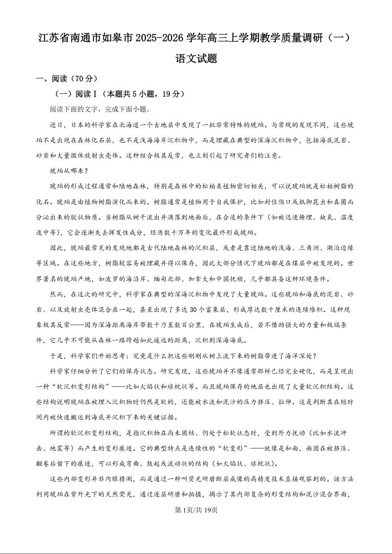 江苏省南通市如皋市2026届高三上学期教学质量调研(一)语文答案.docx