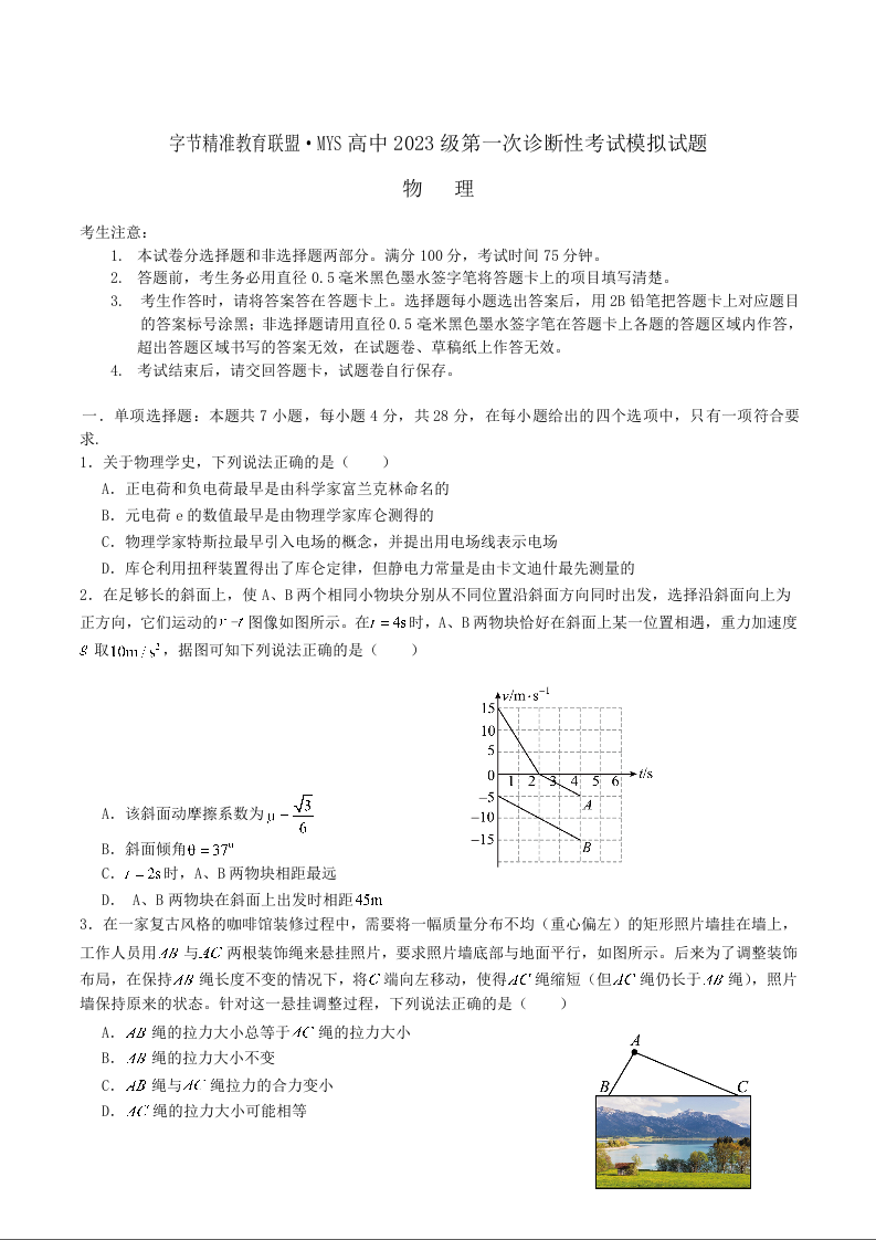 四川省字节精准教育联盟2026届高三上学期第一次诊断性考试模拟 物理试卷(含答案).docx