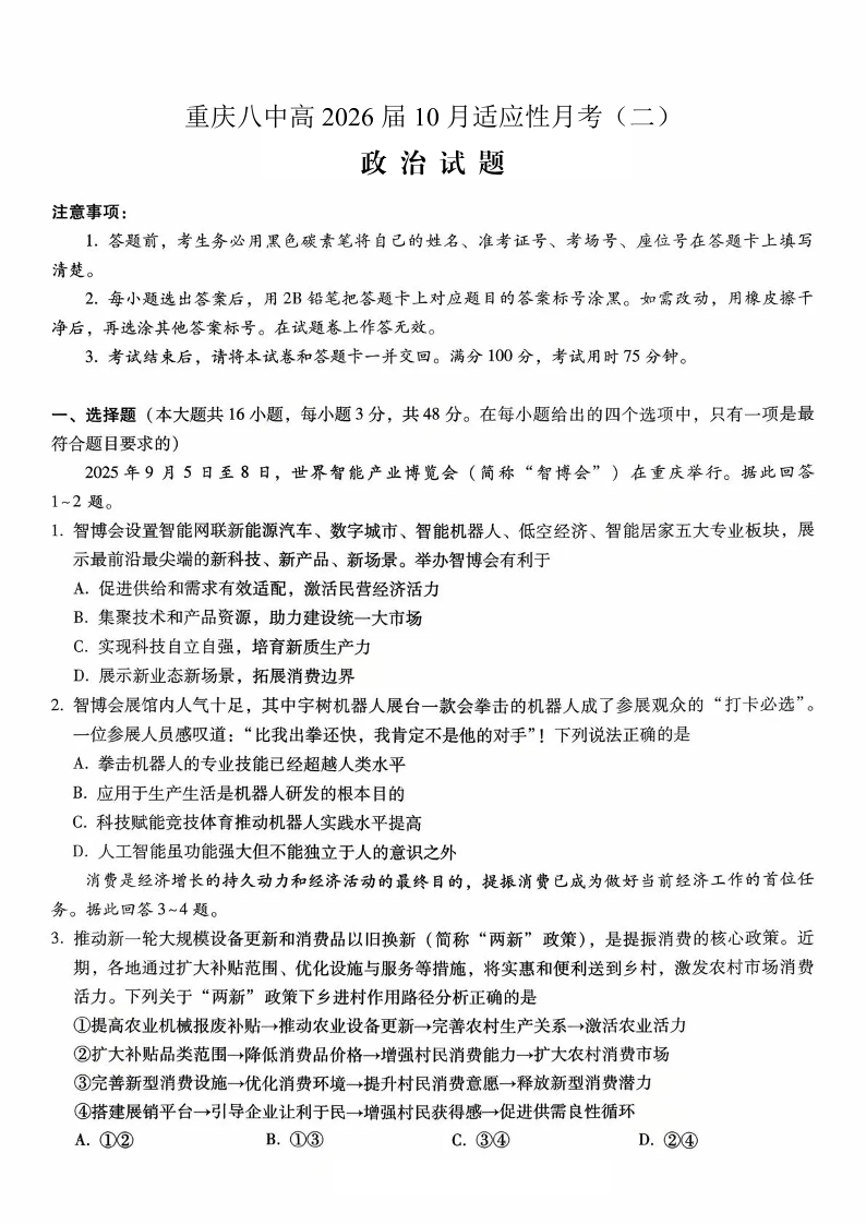 重庆市第八中学2026届高考适应性月考卷(二)政治.pdf