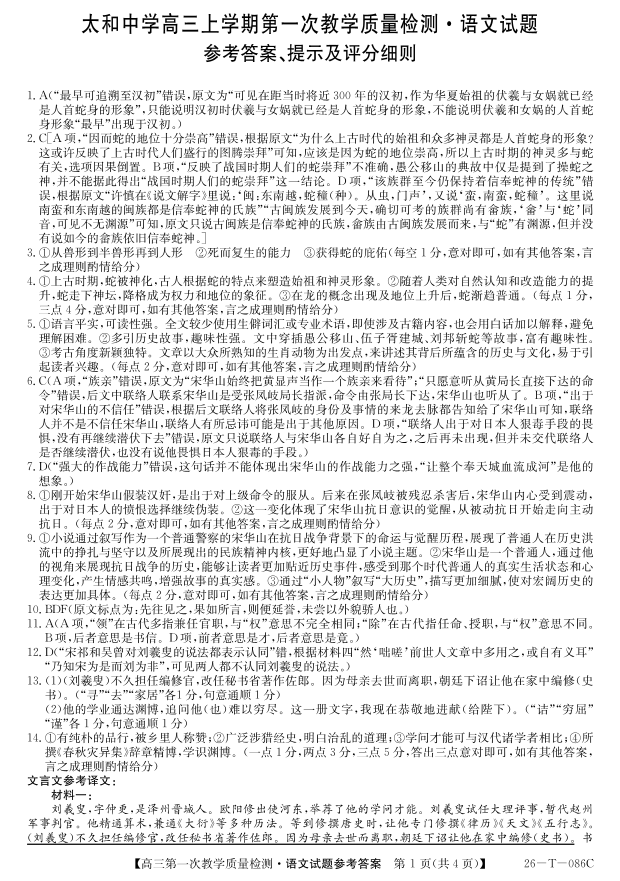 太和中学高三上学期第一次教学质量检测 语文答案.pdf