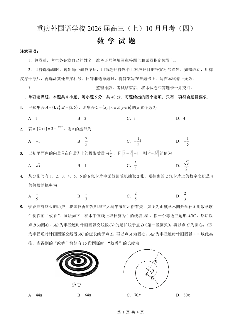 重庆外国语学校2026届高三(上)10月月考(四)数学.pdf