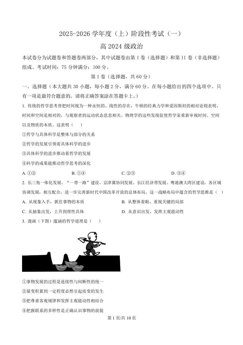 四川省成都市列五中学2025-2026学年高二上学期阶段性考试(一)政治.docx