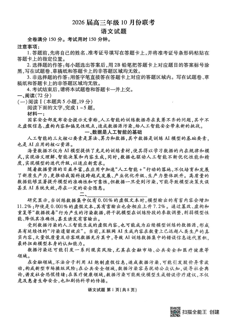 广东省衡水金卷2026届高三年级10月份联考 语文.pdf