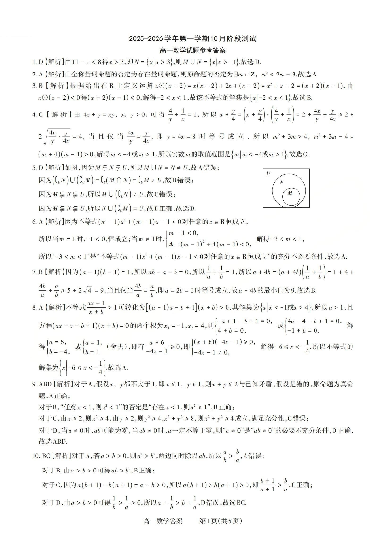 山西省2025-2026学年第一学期10月阶段测试 数学答案.pdf