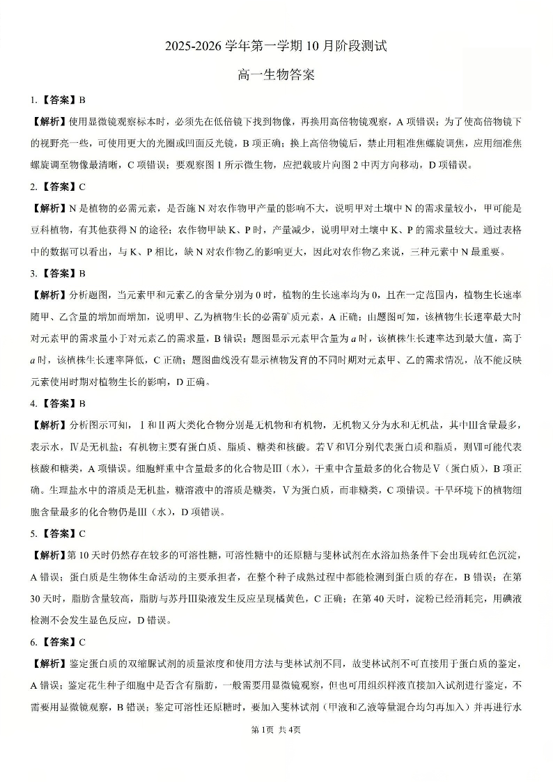 山西省2025-2026学年第一学期10月阶段测试 生物答案.pdf
