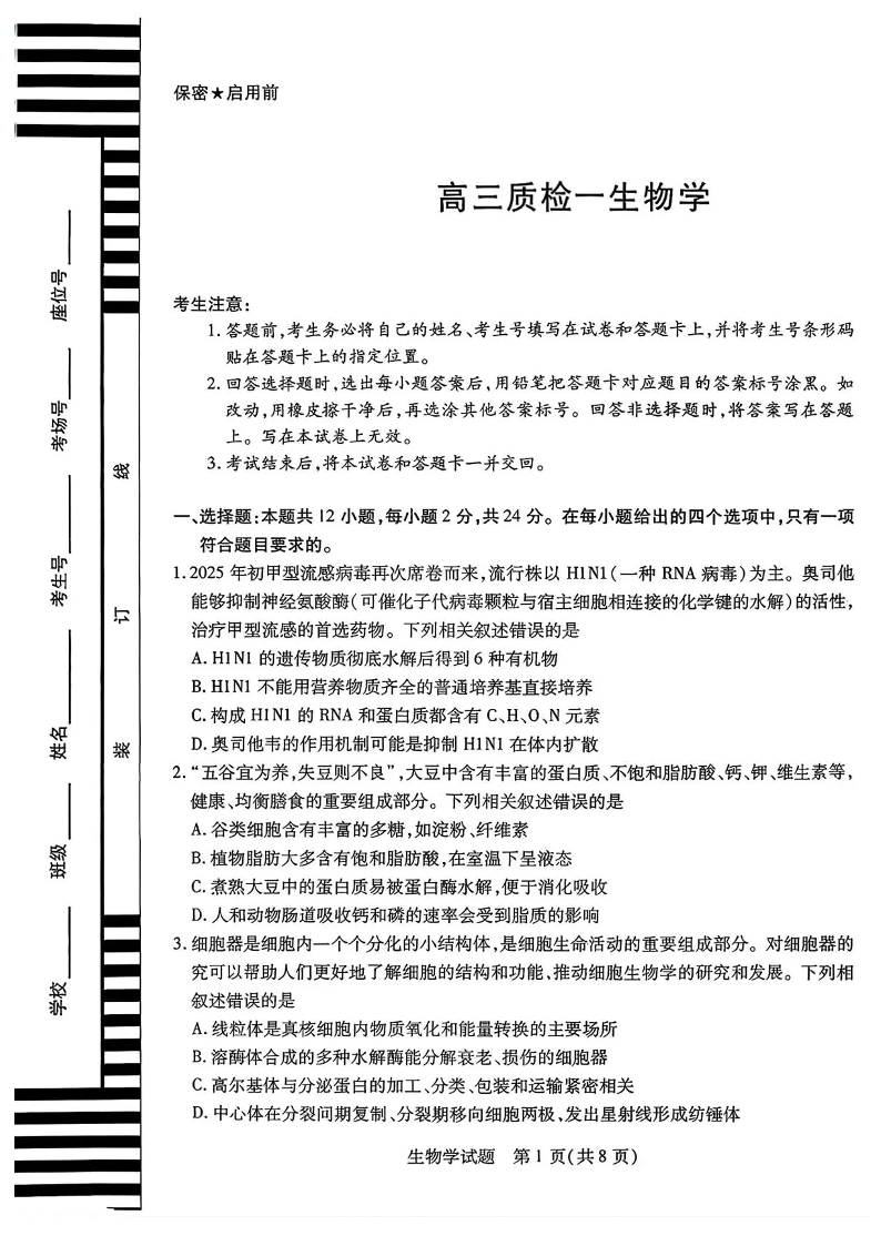 湖南省2025-2026学年(上)湘一名校联盟高三质检(一)生物.pdf