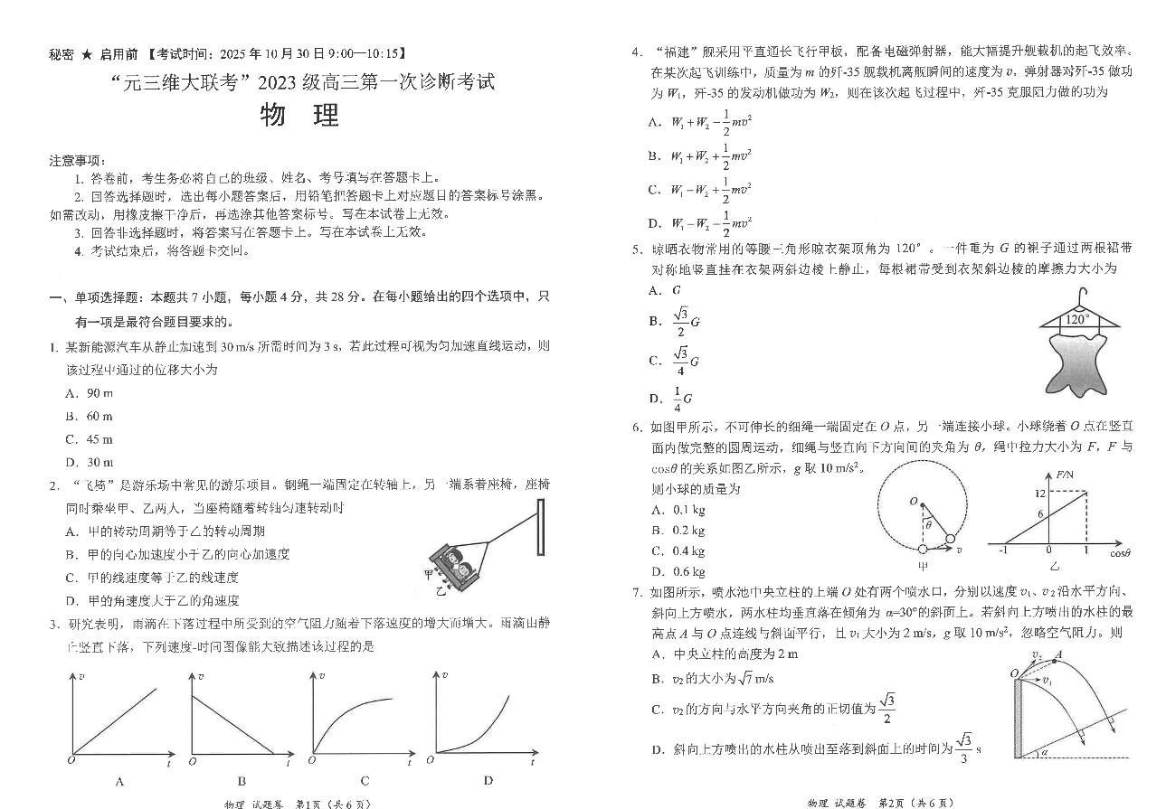 “元三维大联考”2023级高三第一次诊断考试 物理.pdf