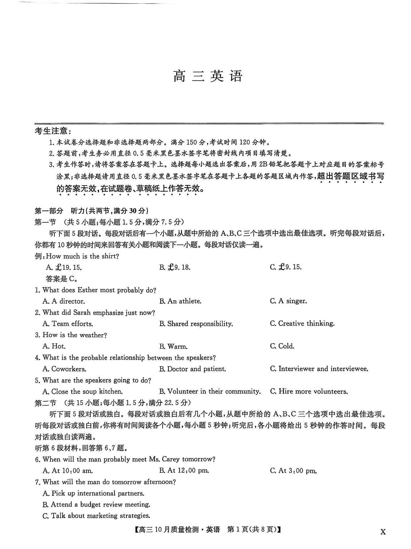 九师联盟2026届高三上学期10月质量检测 英语.pdf