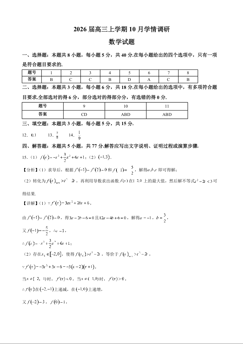江苏省南京市、镇江市、徐州市联盟校2026届高三上学期10月学情调研 数学答案.docx
