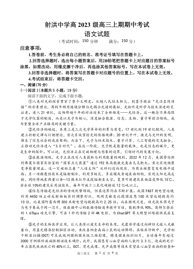 四川省遂宁市射洪中学2026届高三上学期期中考试 语文.docx