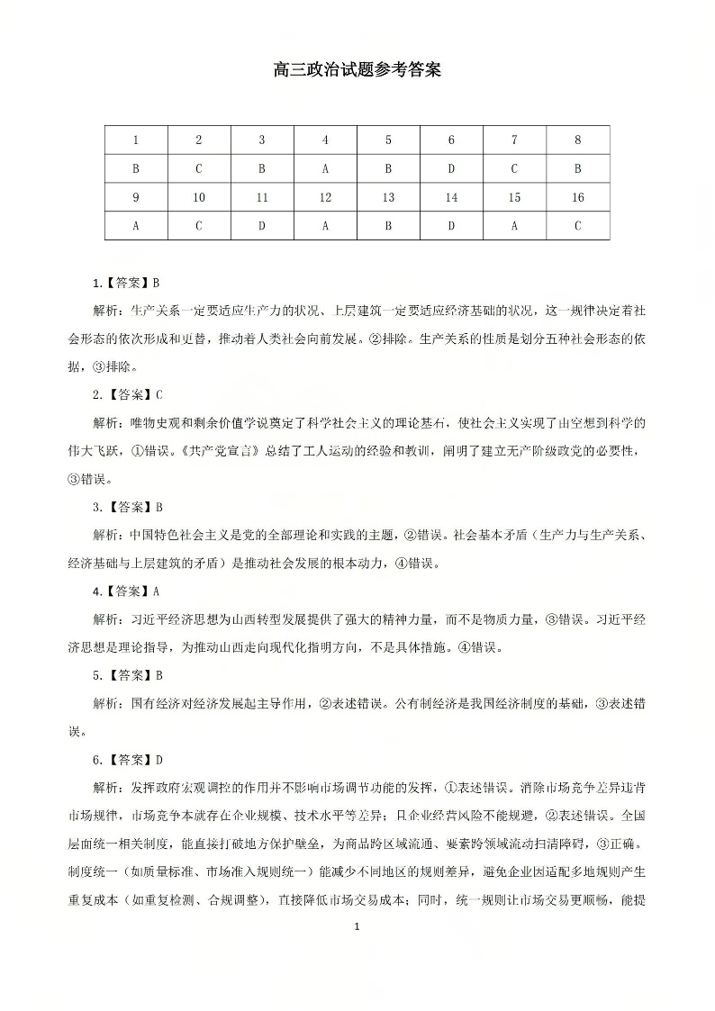 2025-2026学年吕梁市高三阶段性测试 政治答案.pdf