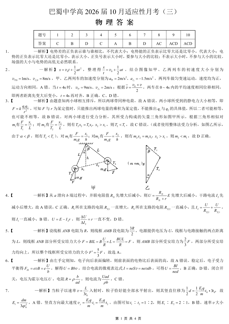 巴蜀中学2026届高考适应性月考卷(三)物理答案.pdf