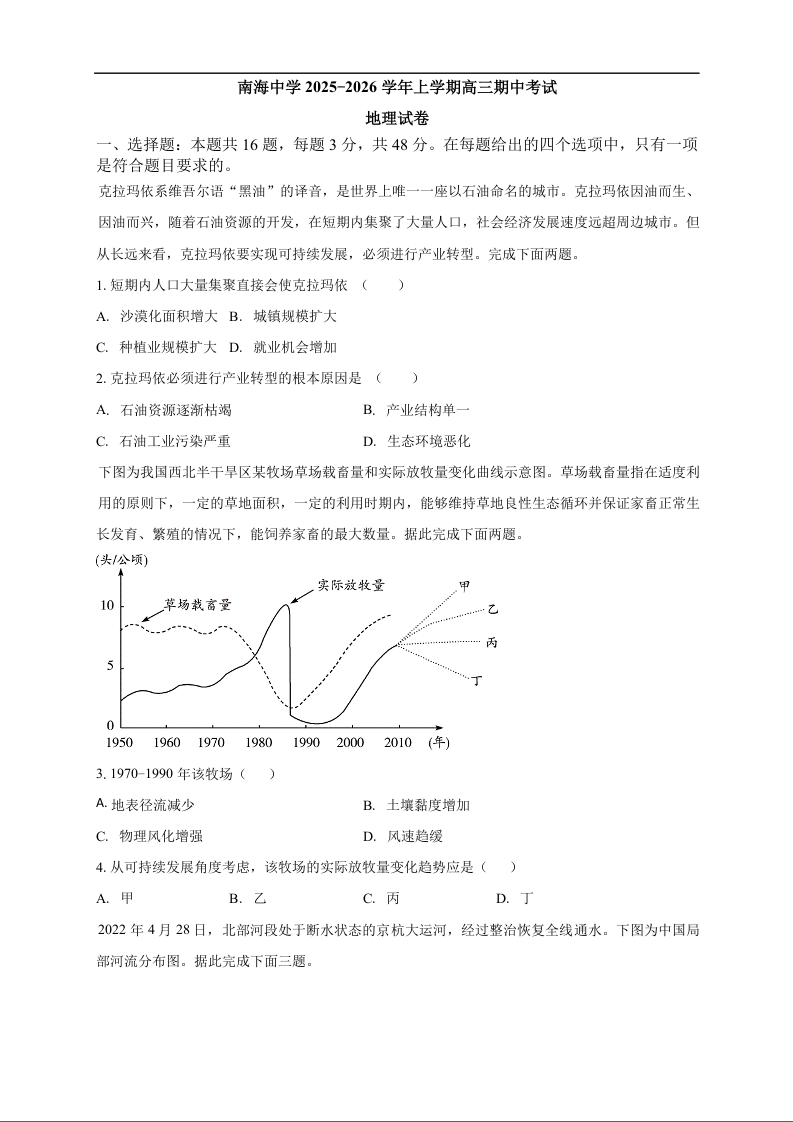 南海中学2025-2026学年上学期高三期中考试 地理.docx