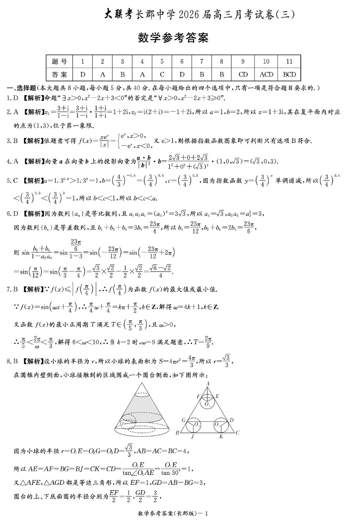 长郡中学2026届高三月考试卷(三)数学答案.pdf