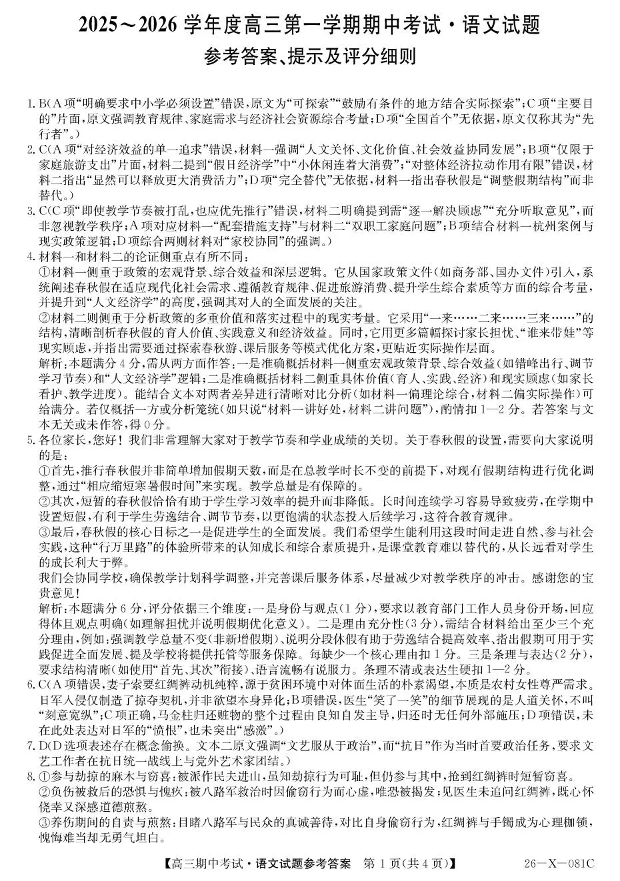 2025~2026学年度高三第一学期期中考试语文答案.pdf