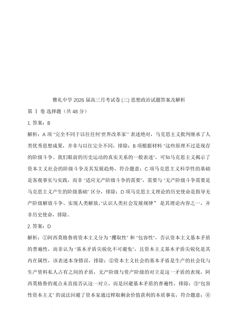 雅礼中学2026届高三月考试卷(三)政治答案.pdf