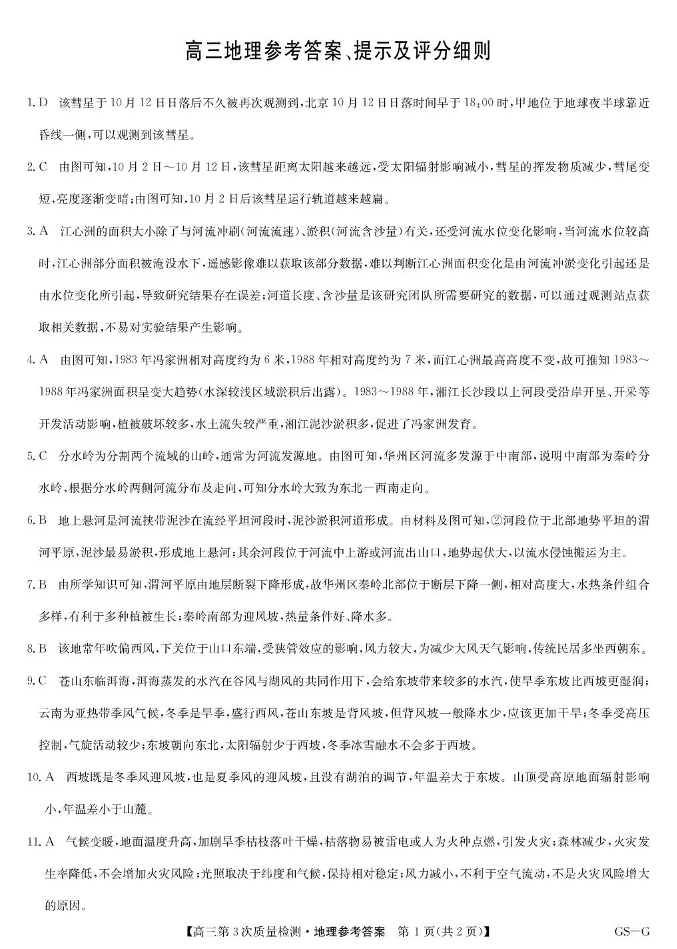 九师联盟2026届高三上学期11月联考地理(GS-G)答案.pdf