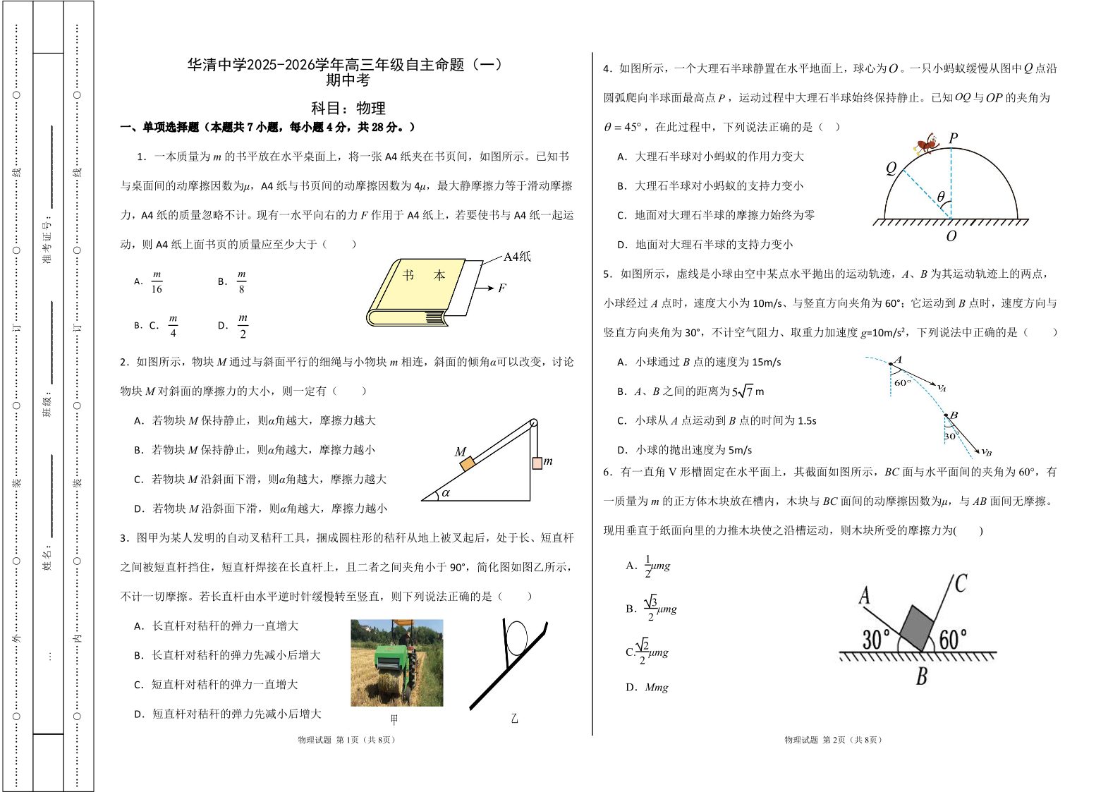 陕西省西安市华清中学2026届高三上学期11月期中考试 物理.pdf
