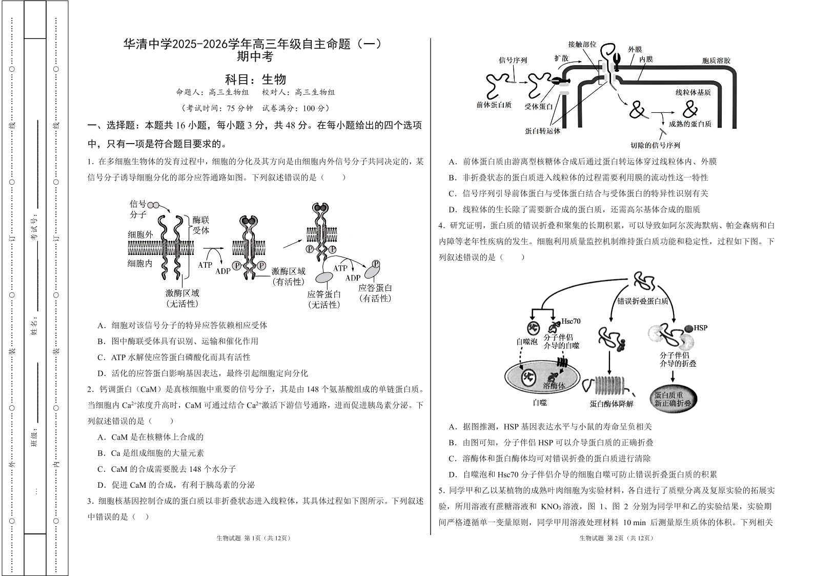 陕西省西安市华清中学2026届高三上学期11月期中考试 生物.pdf