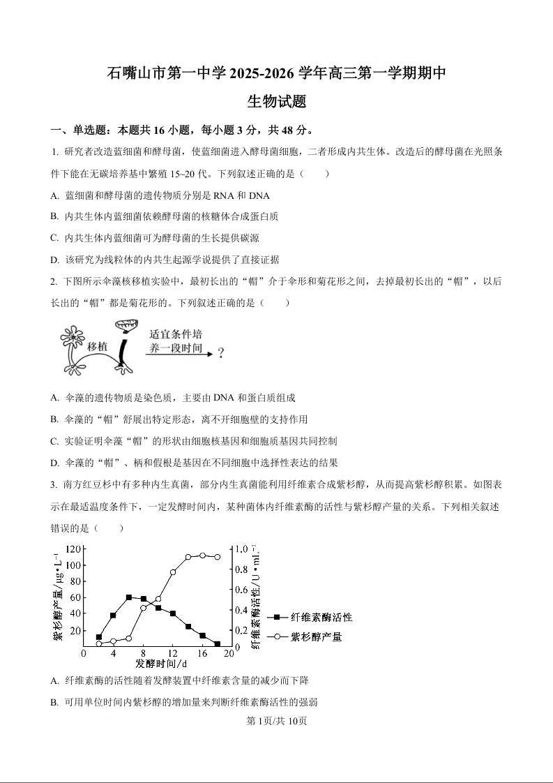 宁夏石嘴山市第一中学2026届高三上学期11月期中考试 生物.docx