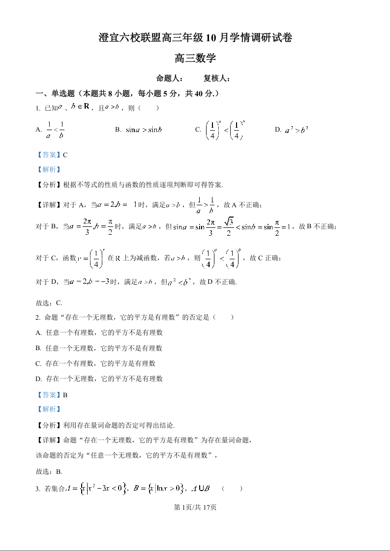 江苏省澄宜六校联盟2025-2026学年高三上学期10月学情调研 数学答案.docx