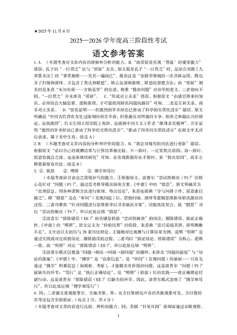 三门峡市2025—2026学年度高三阶段性考试 语文答案.pdf