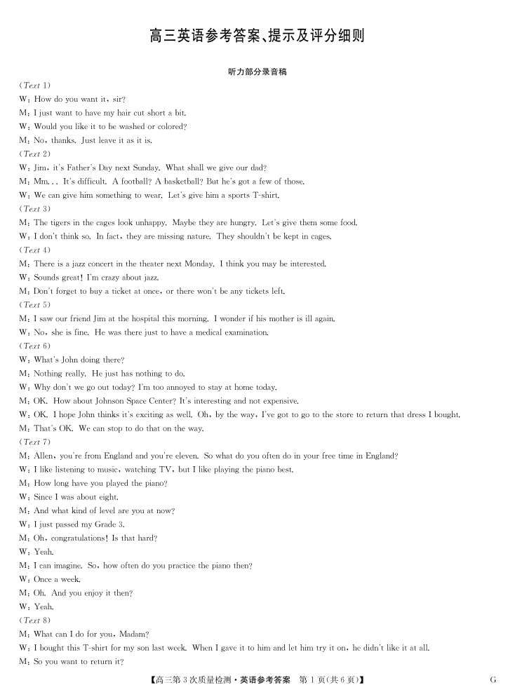 九师联盟2026届高三上学期11月联考 英语答案.pdf