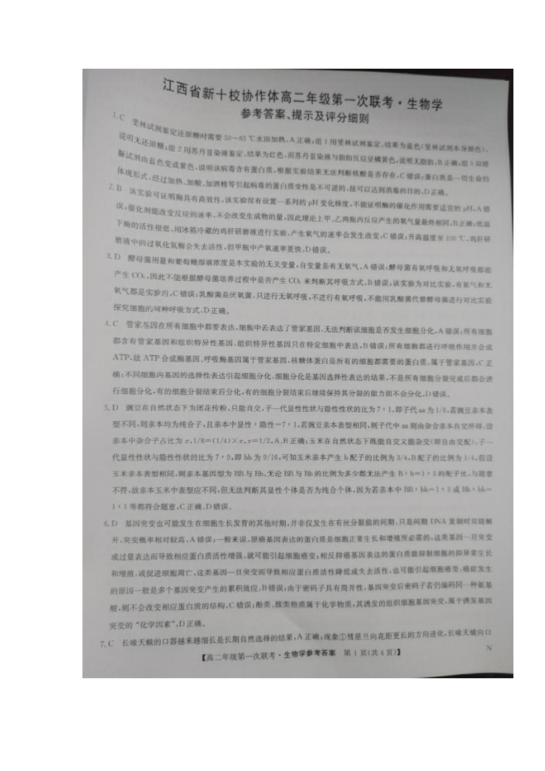 江西省新十校协作体2025-2026学年高二上学期第一次联考 生物答案.docx