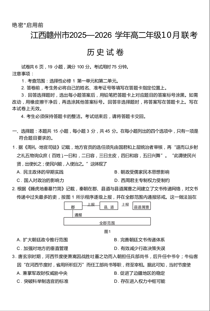 江西省赣州市2025-2026学年高二上学期10月联考 历史试题(含答案).docx