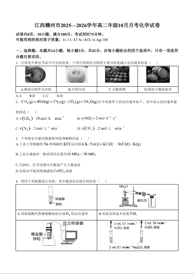 江西省赣州市2025-2026学年高二上学期10月联考 化学试题(含答案).docx