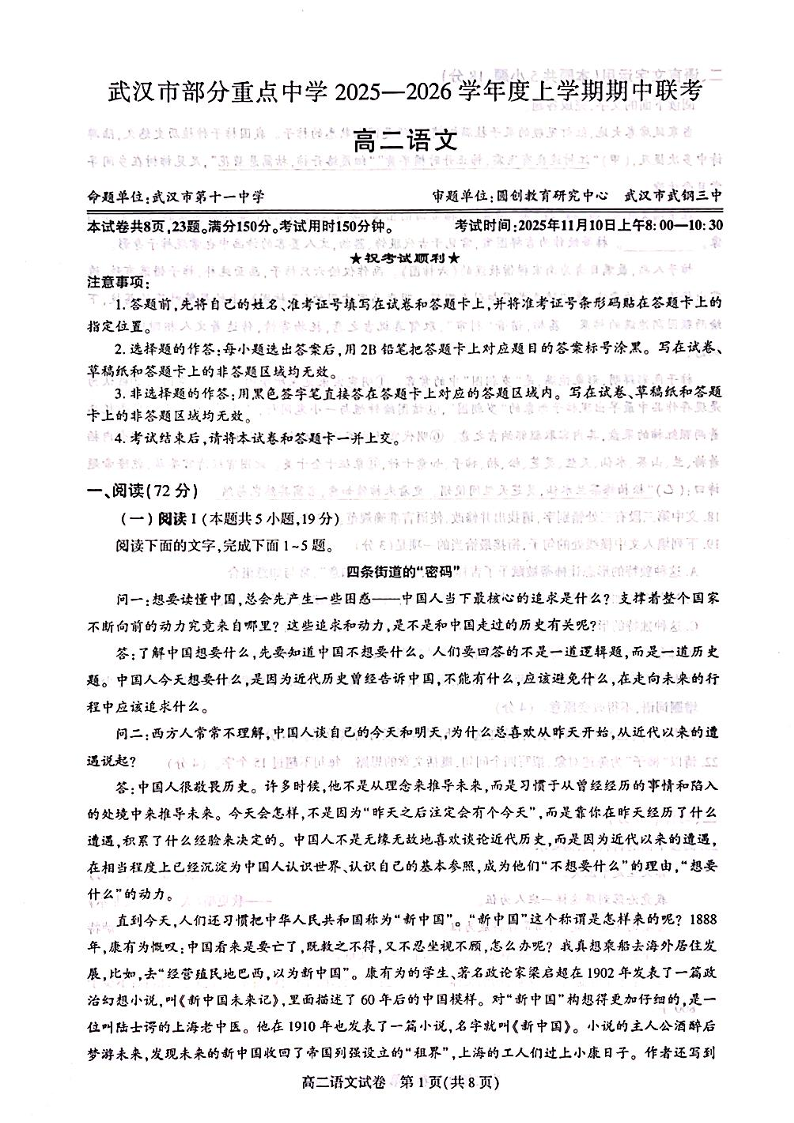 武汉市部分重点中学2025-2026学年度上学期高二期中联考 语文.pdf