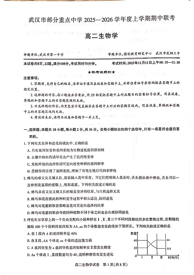 武汉市部分重点中学2025-2026学年度上学期高二期中联考 生物.pdf