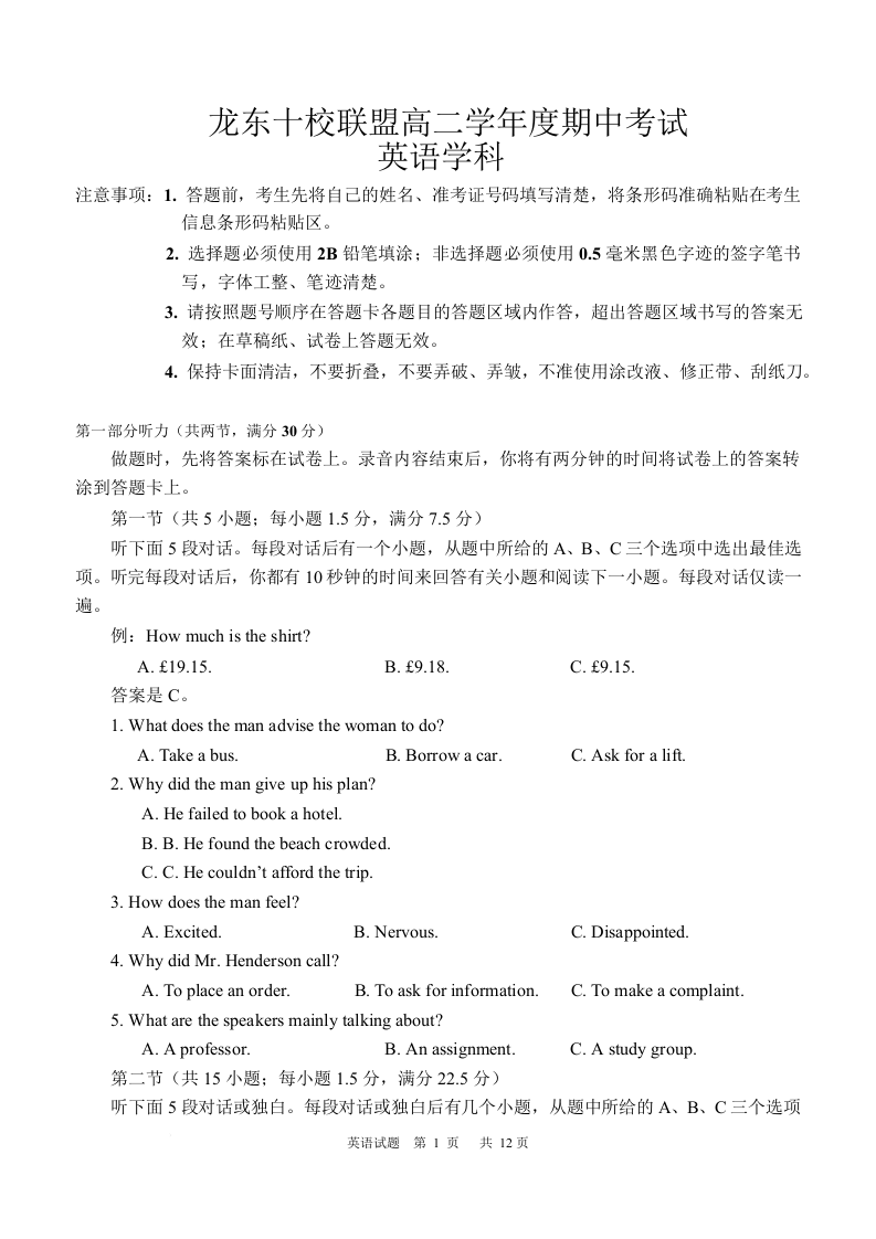 黑龙江省龙东十校联盟2025-2026学年高二上学期期中考试 英语.docx