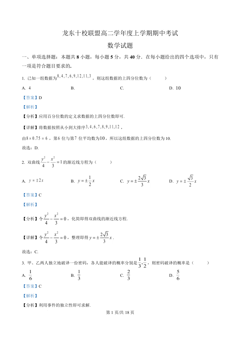 黑龙江省龙东十校联盟2025-2026学年高二上学期期中考试 数学答案.docx
