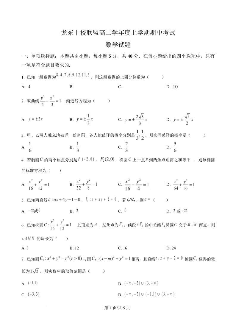 黑龙江省龙东十校联盟2025-2026学年高二上学期期中考试 数学.docx