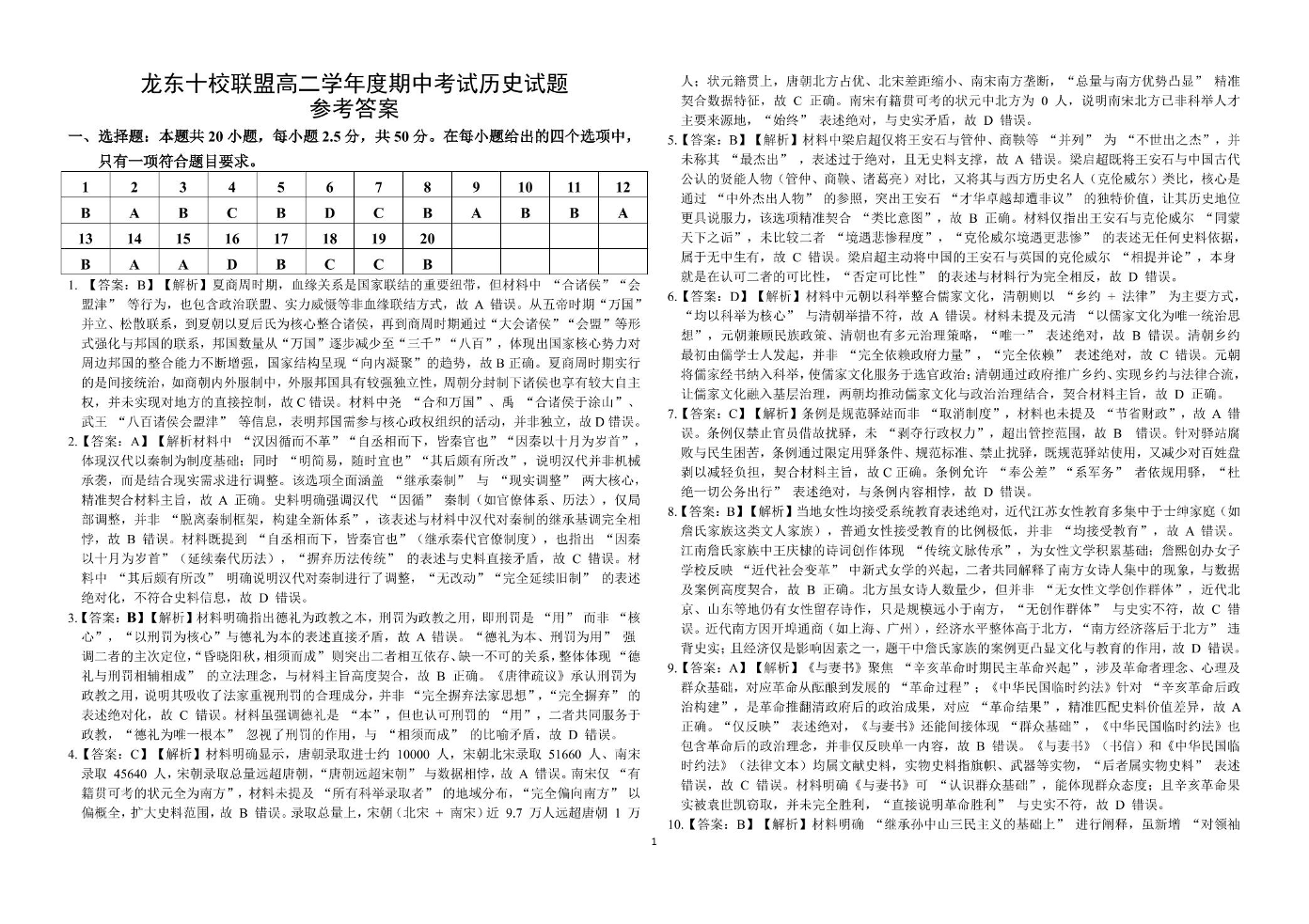 黑龙江省龙东十校联盟2025-2026学年高二上学期期中考试 历史答案.pdf