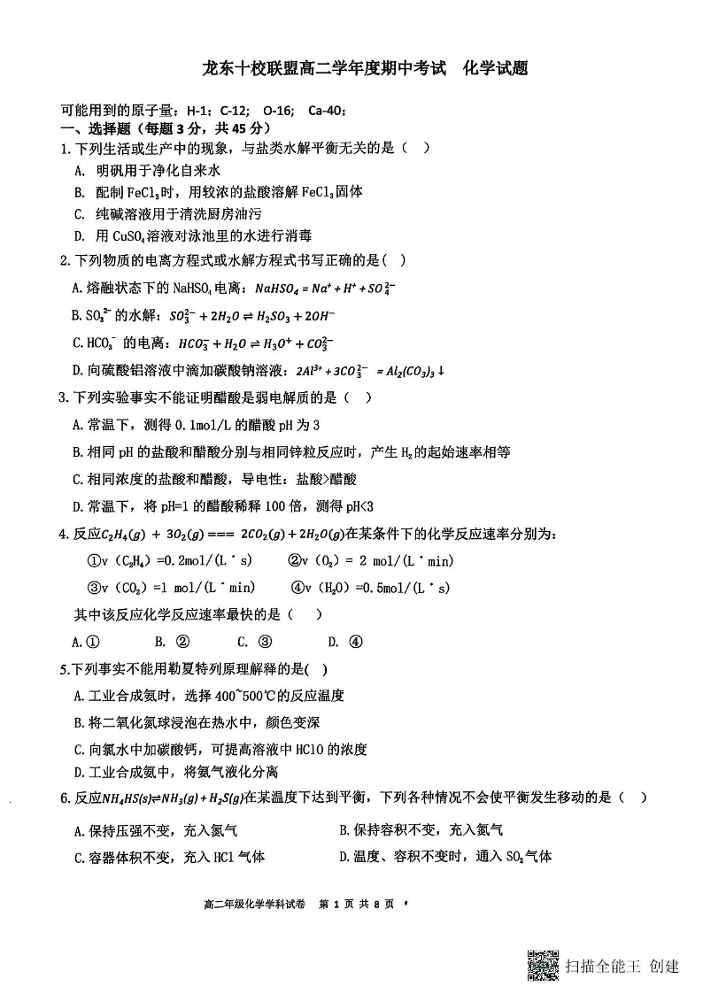 黑龙江省龙东十校联盟2025-2026学年高二上学期期中考试 化学.pdf