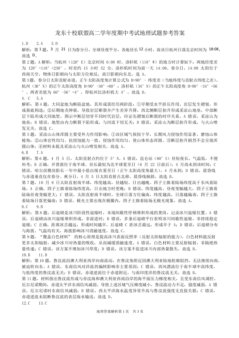 黑龙江省龙东十校联盟2025-2026学年高二上学期期中考试 地理答案.docx