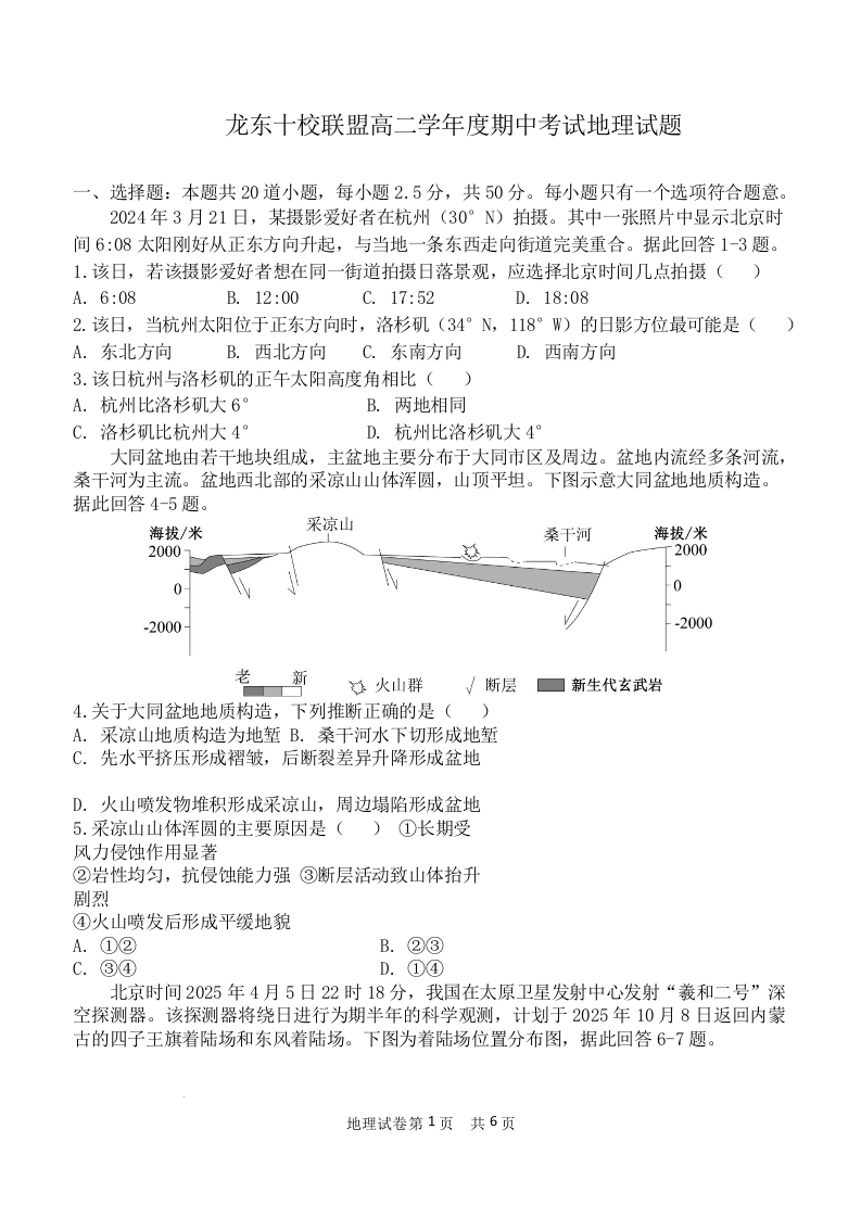黑龙江省龙东十校联盟2025-2026学年高二上学期期中考试 地理.docx