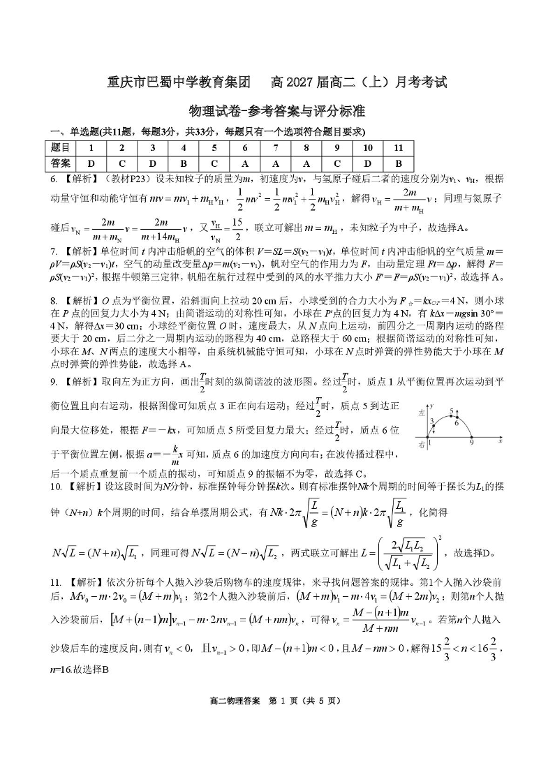 重庆市巴蜀中学2025-2026学年高二上学期10月月考 物理答案.pdf