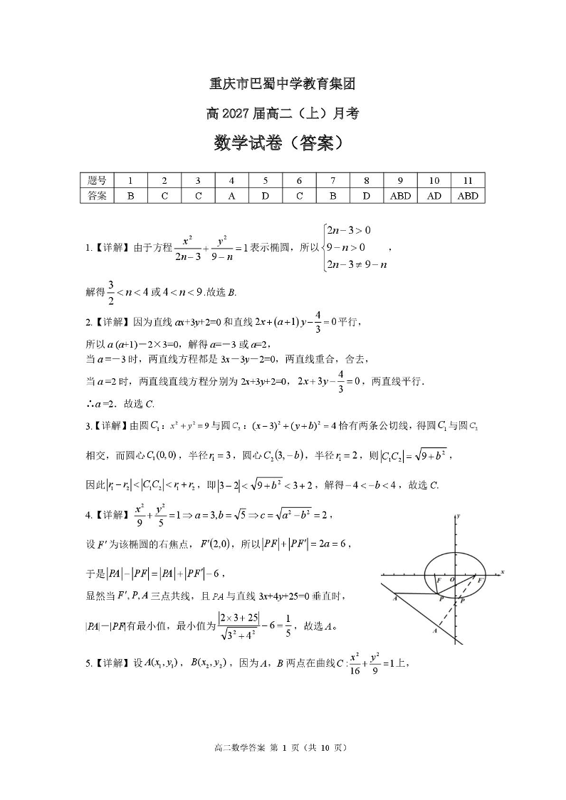 重庆市巴蜀中学2025-2026学年高二上学期10月月考 数学答案.pdf