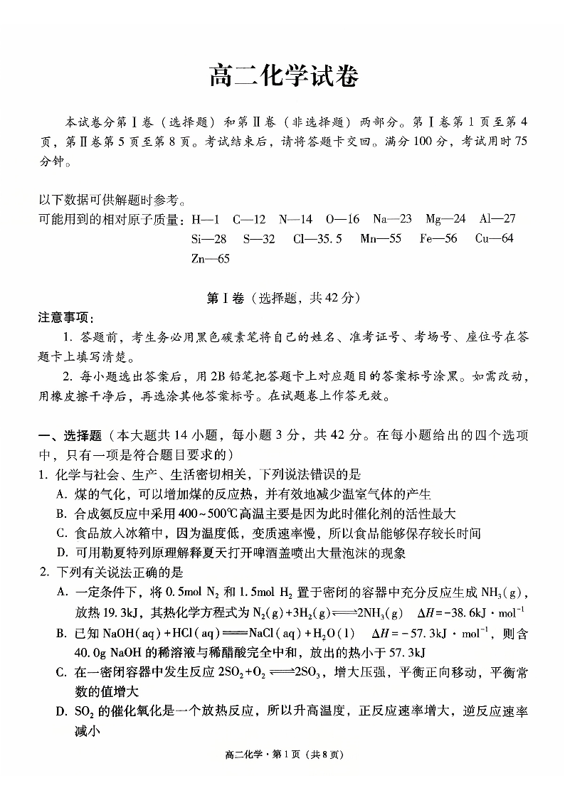 贵阳一中2024级高二年级教学质量监测卷(一)化学.pdf