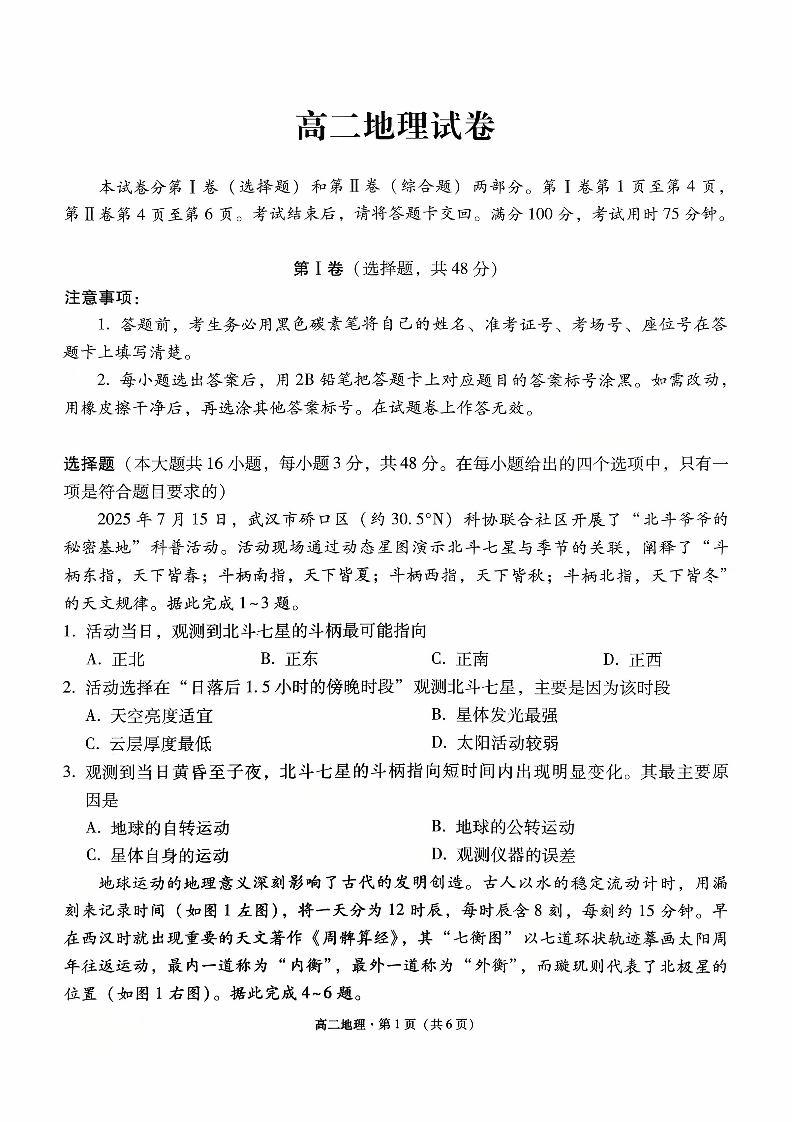 贵阳一中2024级高二年级教学质量监测卷(一)地理.pdf