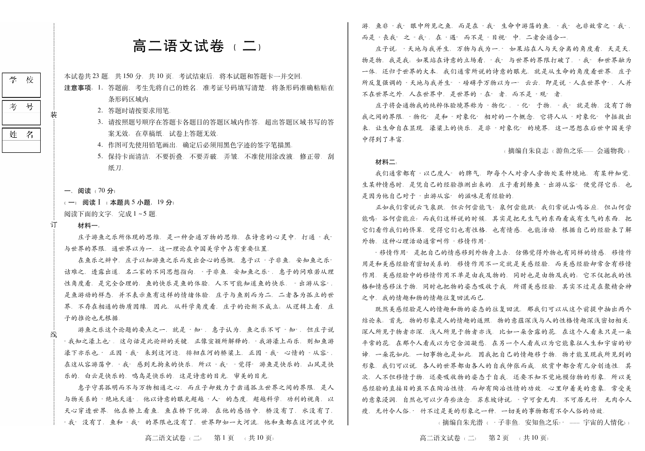 新时代高中教育联合体2025年11月高二学年期中联考巩固卷(二)语文.pdf