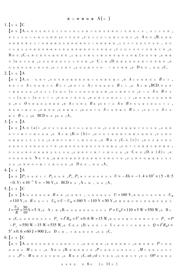 新时代高中教育联合体2025年11月高二学年期中联考巩固卷(二)物理A答案.pdf