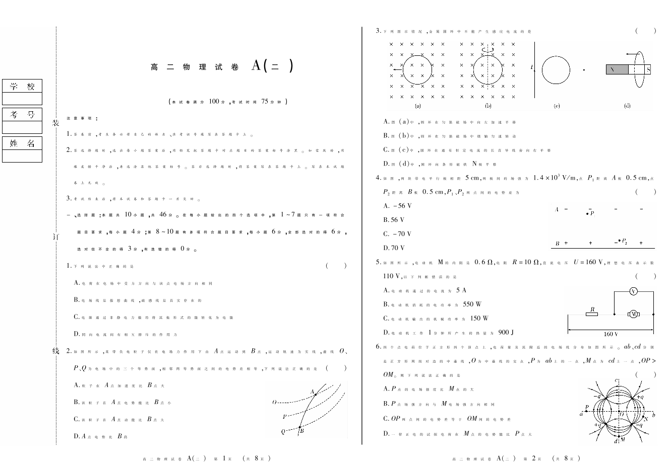 新时代高中教育联合体2025年11月高二学年期中联考巩固卷(二)物理A.pdf