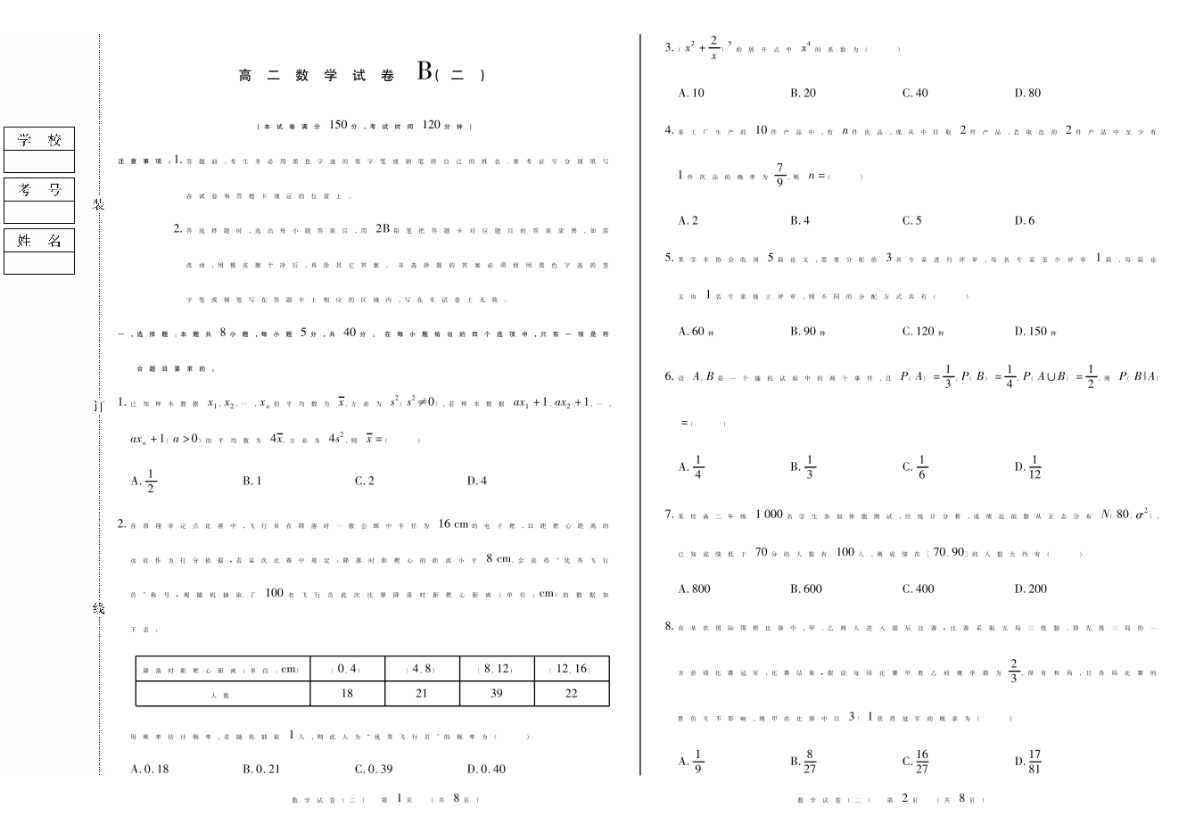 新时代高中教育联合体2025年11月高二学年期中联考巩固卷(二)数学B.pdf