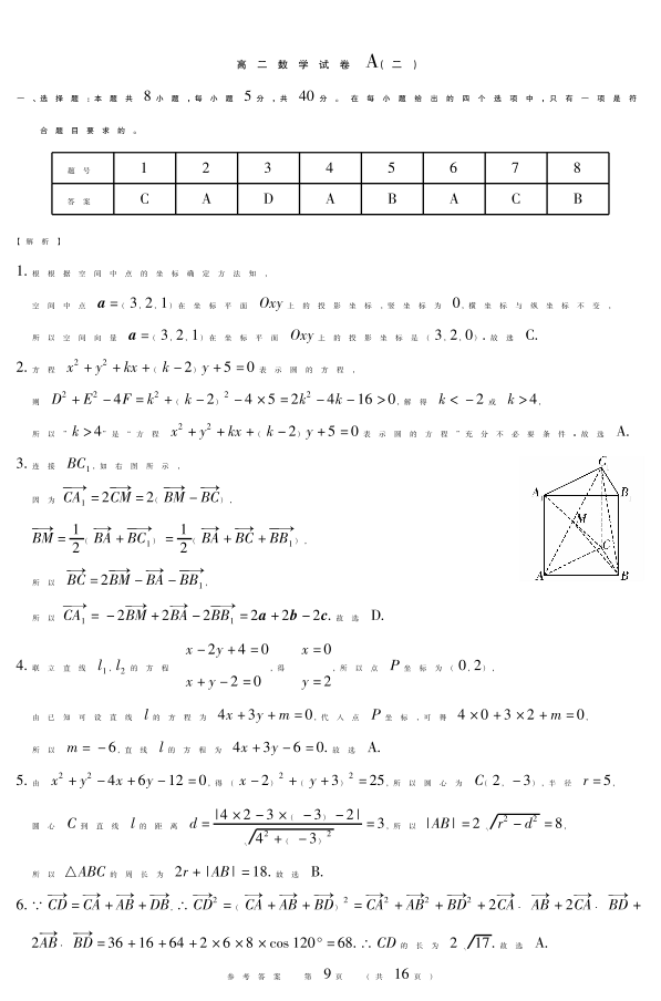 新时代高中教育联合体2025年11月高二学年期中联考巩固卷(二)数学A答案.pdf